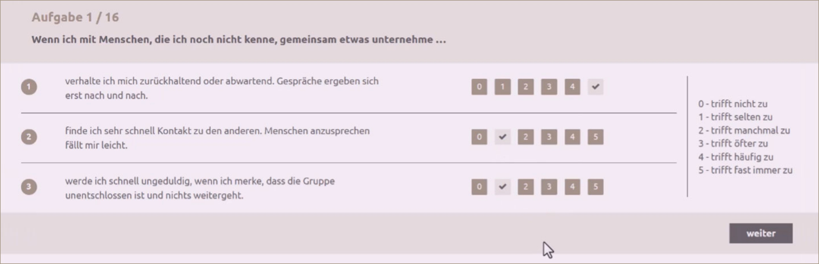 - Handlungsorientierung: Mit Merkmalen der Selbstbehauptung und dem Streben nach Präsenz, konkretem Handeln und schnellen Lösungen.
